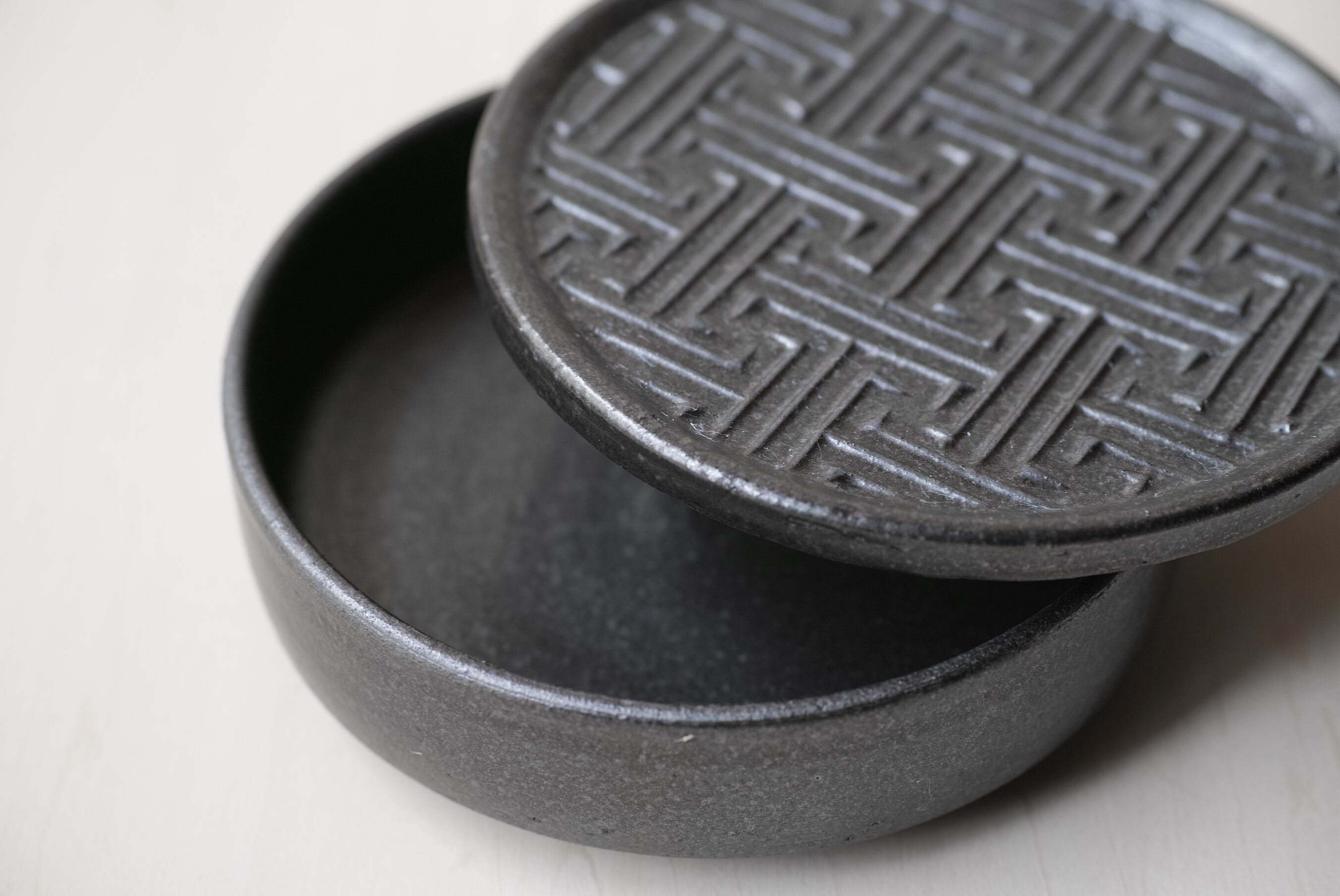 伝統的な模様を作家なりに解釈した万字模様。ずっと連なる模様は吉祥を思わせる、続く繁栄の意味も込められています。