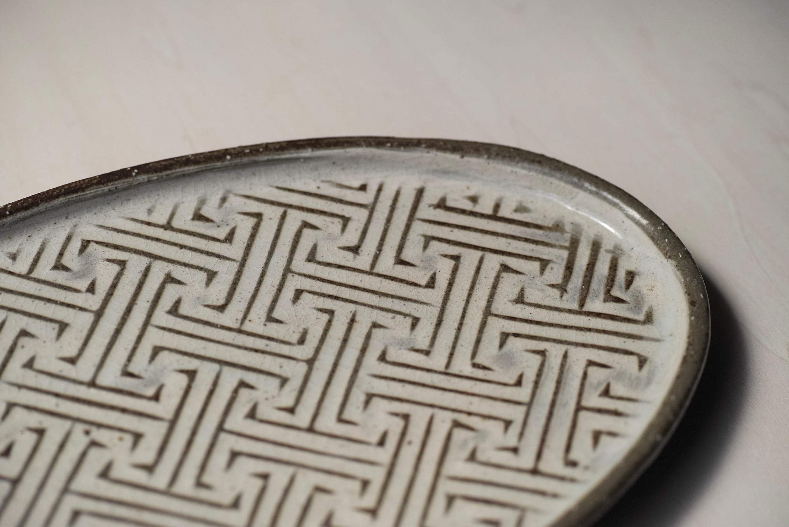 伝統的な模様を作家なりに解釈した万字模様。ずっと連なる模様は吉祥を思わせる、続く繁栄の意味も込められています。
