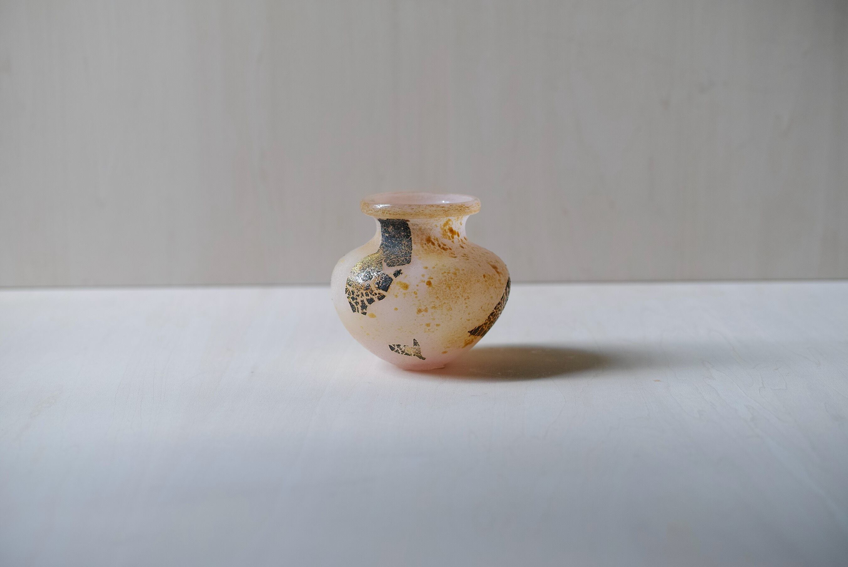 強く感じられる方もいらしゃるかもしれませんが、小ぶりなサイズと発掘品を思わせる時間でとろけたようなフォルムで、空間と意識に程よい余白を生んでくれます。もちろん花器としてもお使いいただけます。